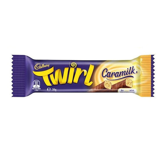 Caramilk flavoured swirls and curls covered in Cadbury Dairy Milk milk chocolate