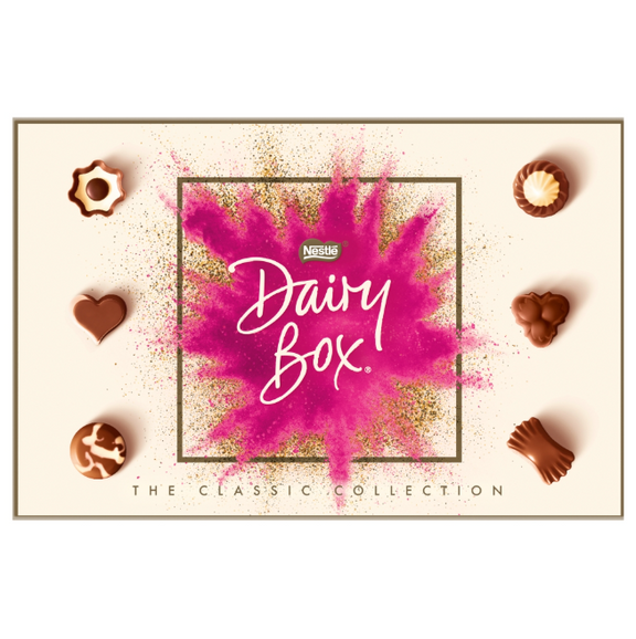 Dairy Box offers a delicious selection of milk chocolates in a variety of truffles and pralines, it makes the the perfect sweet gift this Christmas. Inside this classic collection of Nestle Dairy Box you'll find this delicious selection: