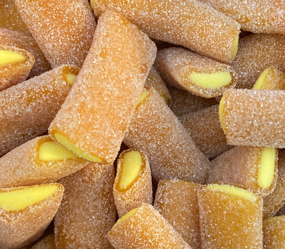 Ingredients: Sugar, glucose-fructose syrup, invert sugar syrup, WHEAT FLOUR, corn starch, coconut vegetable fat, humectant: glycerol; acids: citric acid, malic acid, lactic acid; potato starch, gelatin, acidity regulators: sodium malate, sodium lactate, potassium citrates; aromas, salt, fruit and vegetable concentrates: safflower, lemon; colors: E100, E120.