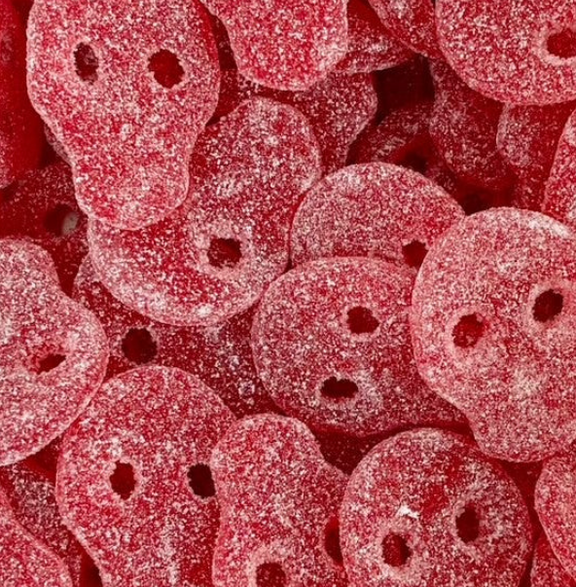 Ingredients : Glucose syrup, sugar, modified starch (GLUTEN-FREE WHEAT, maize, potato), acids (malic acid, sodium malate, lactic acid, citric acid), flavouring, colouring food (black carrot concentrate), colouring (E100, E133, E141)