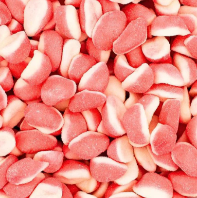 Ingredients: Sugar, Glucose Syrup, Water, Beef Gelatine, Acid (Citric Acid), Flavourings, Gelling Agent (Pectin), Colour (E129)