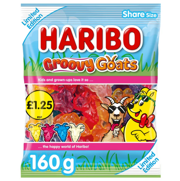 Are Haribo Groovy Goats the G.O.A.T? Well, there's not long to decide. These crazy goats have a cool gummy texture and are popping with a mix of blue raspberry, bubblegum, pineapple and bananaberry flavours...which is your Greatest of All Time?