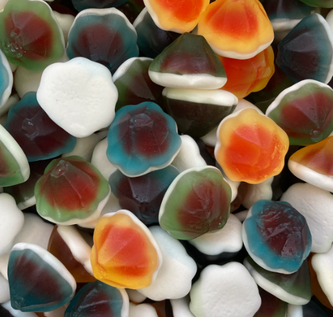 Ingredients: Glucose syrup; sugar; dextrose; gelatine; acids: citric acid, lactic acid; humectant: glycerol; concentrated apple juice; corn starch; fruit and plant concentrates: carrot, safflower, spirulina, apple, lemon; aroma; stabilizer: carrageenan; sunflower oil; surface treatment agent: beeswax white and yellow.