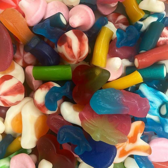 Sugar, Glucose Syrup, Wheat Starch, Water, Pork & Beef Gelatine, Modified Maize Starch, Acids (Lactic Acid, Malic Acid, Citric Acid),Acidity Regulator (Sodium Malates), Modified Poatato Starch, Acidity Regulator (Sodium Malates,Sodium Hydrogen Carbonate), Flavouring, Plant and Vegetable Concentrates (Spirulina, Safflower, Black Carrot) E100, E120, E133, E171, humectant: glycerol; Caramel Syrup, Humectants (Sorbitols) Glazing Agents (Beeswax, Carnauba Wax)