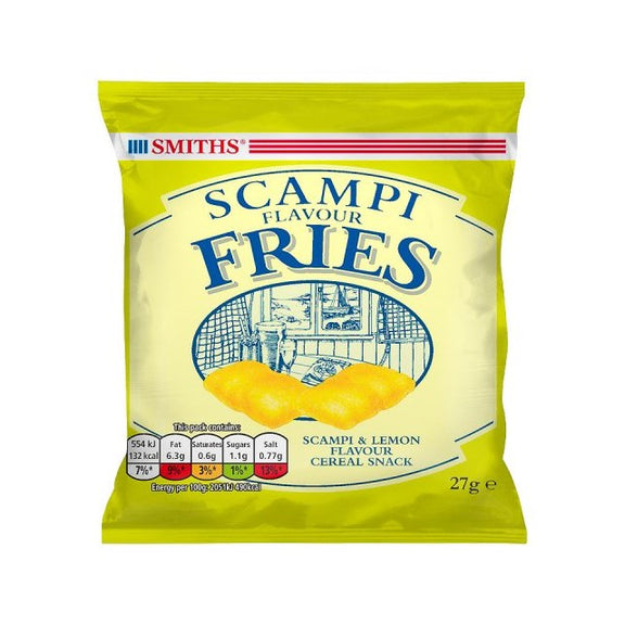 Ingredients Vegetable Oils (Sunflower, Rapeseed, in varying proportions), Breadcrumbs [Wheatflour, Salt, Yeast, Paprika, Colours (E160b, E100)], Maize, Wheatflour (contains Calcium, Iron, Niacin, Thiamin), Scampi and Lemon Seasoning [Lactose (from Milk), Salt, Flavourings (contains Soya), Sugar, Flavour Enhancer (Monosodium Glutamate), Yeast Extract, Potassium Chloride, Acid (Citric Acid))], Soya Grits, Potato Starch, Salt
